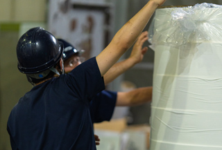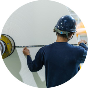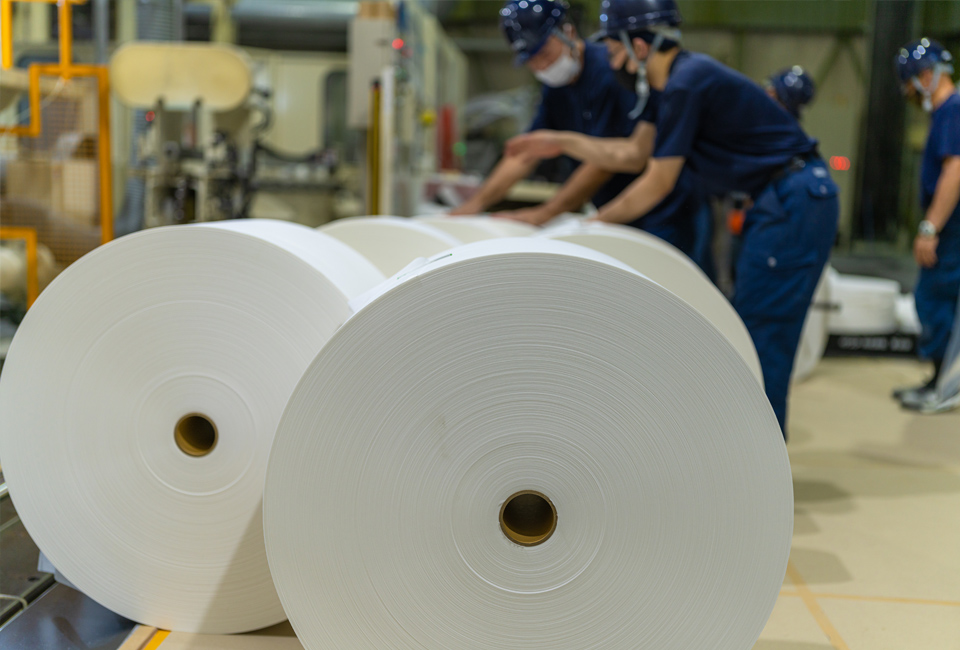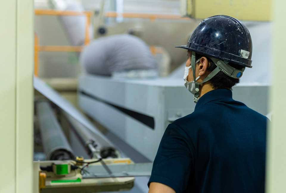 次の紙が巻き上がるまでに製品の検査や記録、薬品の補充、機械の見回りなどを行います。