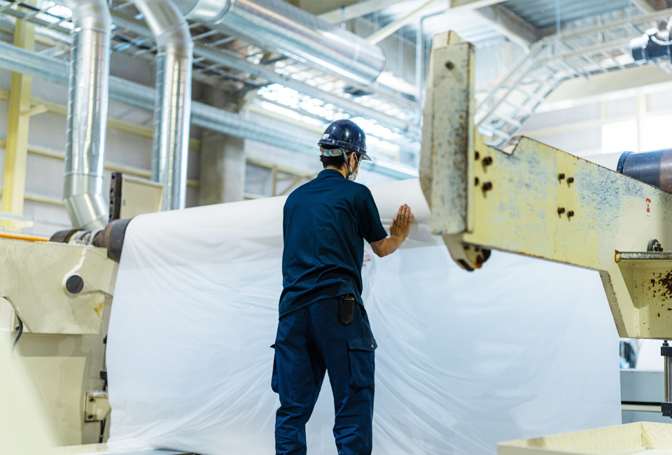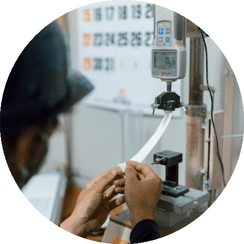 出来た紙の品質をチェック、 紙の重さや強度などを測定。
