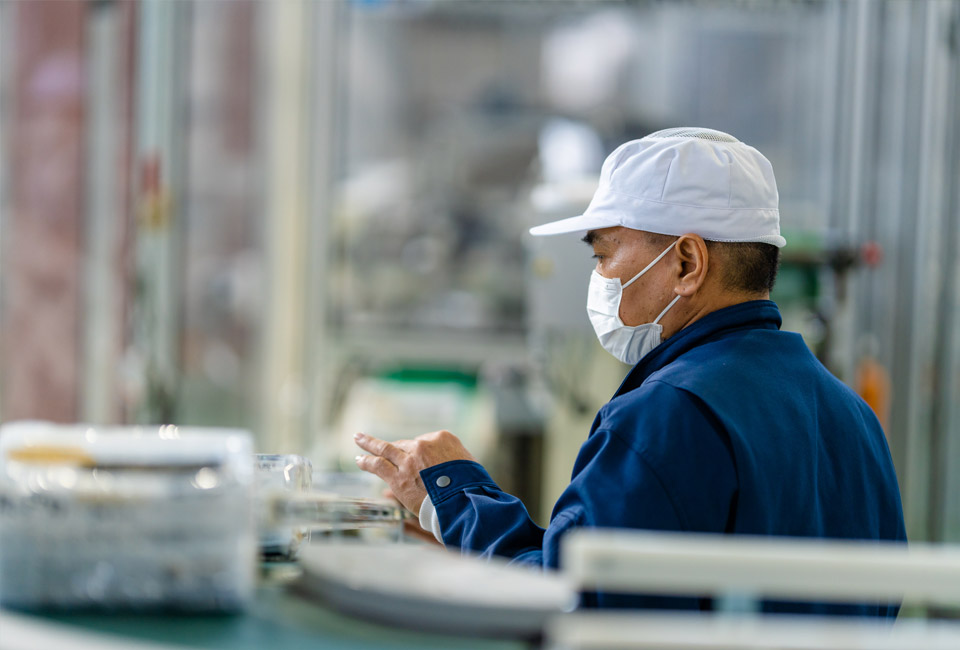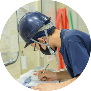 大学では文学・歴史分野を専攻。前職は医薬品の製造オペレーター。腰を据えて働きたかったこと、書道で養われた集中力も活かせると思いスキルの向上も考えて入社を決意。現在は班長を任されています。